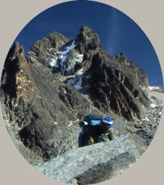 Ce matin, nous préparons nos sacs et nous partons en direction du refuge AUSTRIAN-HUT. Pour cela, il nous faut gravir 700 mètres de dénivelée, pour dormir à 4700 mètres. Le départ est donné pour une approche longue dans des éboulis morainiques verglacés. Notre acclimatation se fera en effectuant le tour du massif. Sur ce périple de 360° sur le Mont-KENYA, nous effectuerons l'ascension de la Pointe LENANA, 4985 mètres, sommet satellite des sommets principaux, le BATIAN, 5199 mètres et le NELION, 5188 mètres. Ce sommet ne comporte aucune difficulté, et c'est un sommet idéal pour les trekkeurs, souvent pris et "vendu" aux touristes, comme le sommet du Mont-KENYA par les agences locales peu scrupuleuses.