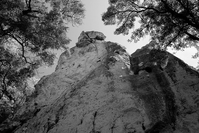 L’ensemble des rochers, rive droite, est composée de deux blocs principaux, la Dube le plus haut 35m, et le petit Cervin qui offre des voies plus courtes mais relativement difficiles.