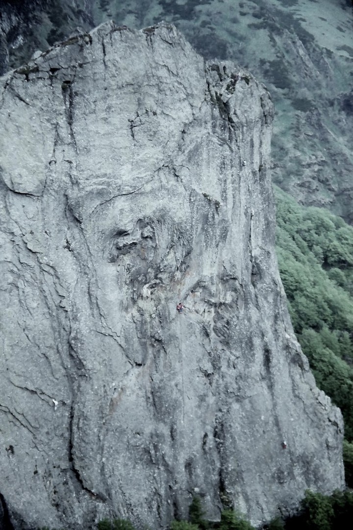 A gauche "CLOE et les PIRATES", ouverte par A Vinouze, en Juillet 1985. 6C+ (6b obligatoire).