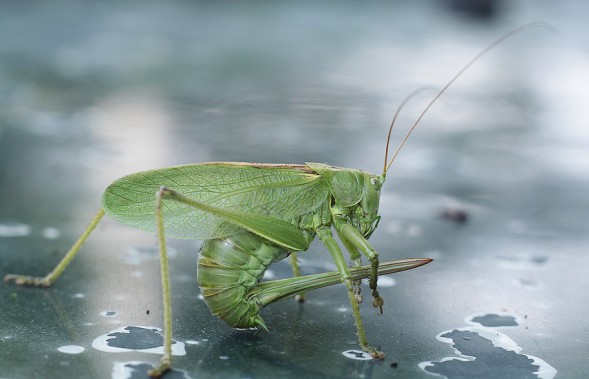 La grande sauterelle verte, ou Tettigonia viridissima, est un insecte orthoptère de la famille des Tettigoniidae. C'est la plus grande sauterelle que l'on trouve en France, avec un corps mesurant environ 28 à 42 mm selon le sexe, pouvant atteindre 50 mm avec les ailes. Elle se caractérise par sa couleur vert vif avec une bande dorsale brune, ses très longues pattes arrière adaptées au saut, ses longues antennes dépassant souvent la longueur de son corps, et chez la femelle, un long organe de pont appelé ovipositeur. Elle est carnivore et se nourrit principalement d'insectes nuisibles comme les mouches et les pucerons, ce qui en fait un auxiliaire utile à l'équilibre de l'écosystème.