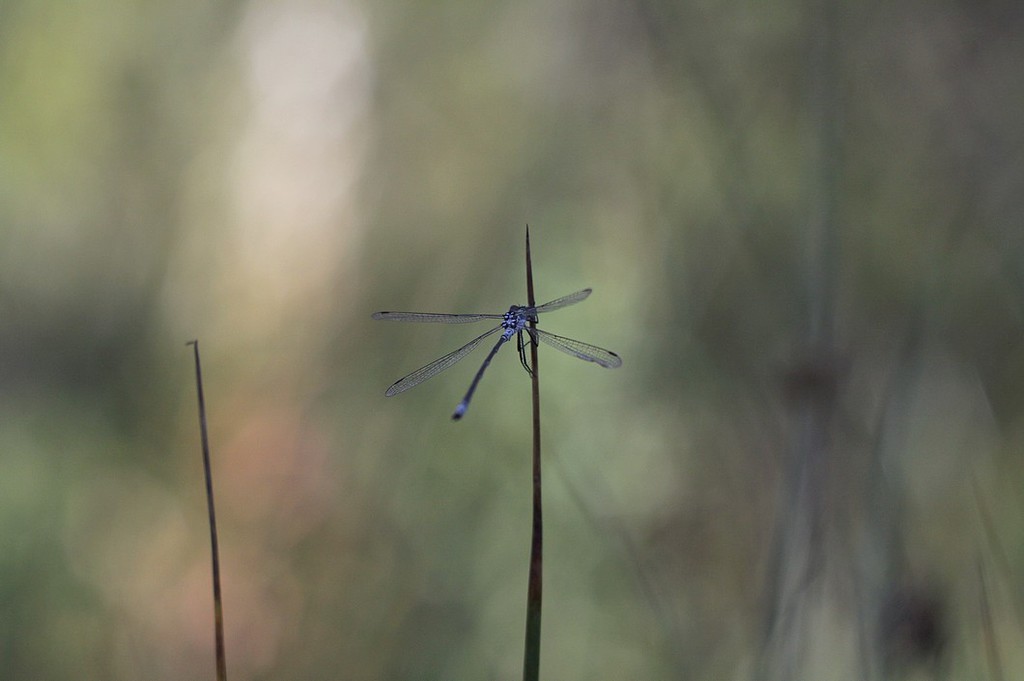 Le Lestes dryas, appelé aussi leste dryade ou leste des bois, est une petite libellule de la famille des Lestidae, originaire d'Eurasie et d'Amérique du Nord. Cette espèce de couleur vert bleuté métallique à cuivré est adaptée aux eaux stagnantes peu profondes, souvent temporaires, où elle peut tolérer des conditions extrêmes que peu d'autres libellules supportent. Elle fréquente les fossés, les étangs, les marais, les lacs, les tourbière de moyenne montagne et peut être trouvée dans des milieux variés, souvent près de végétation dense. On la reconnaît notamment à ses ailes à demi-déployées au repos et à la couleur bleue des yeux des mâles, ainsi qu'à une pruinosité bleutée sur leur thorax et leur abdomen. Le Lestes dryas pond ses œufs à la base des plantes aquatiques, où ils hivernent avant l'éclosion au printemps. Cette espèce est répandue en Europe, en Asie et en Amérique du Nord, mais devient localement rare en raison de la dégradation des zones humides et des modifications humaines des habitats. Elle est néanmoins classée comme de souffrance mineure sur la liste UICN.