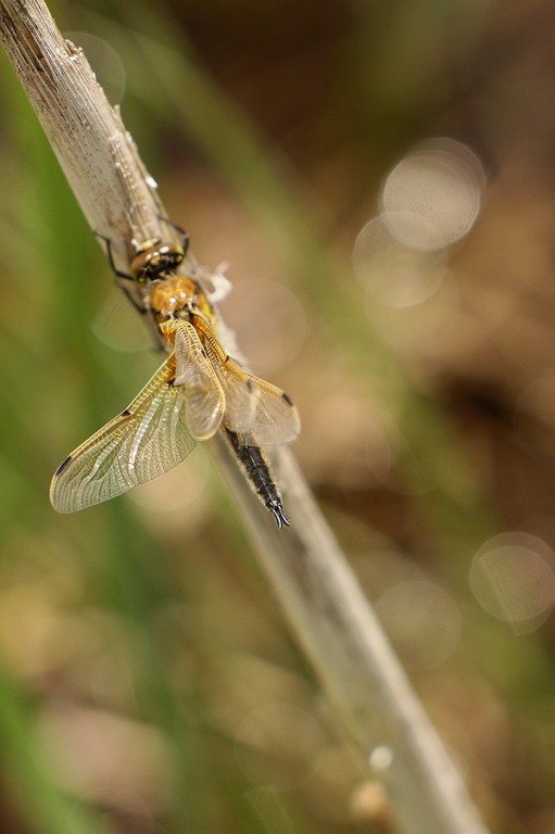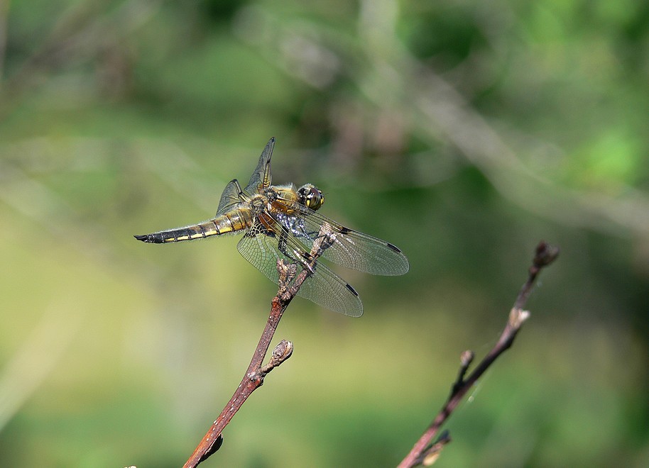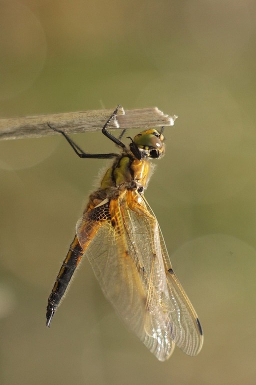 Ainsi, la libellule à quatre taches présente une activité de vol principalement printanière et estivale, avec un comportement territorial marqué chez les mâles et une forte association aux milieux aquatiques pour la chasse et la reproduction.