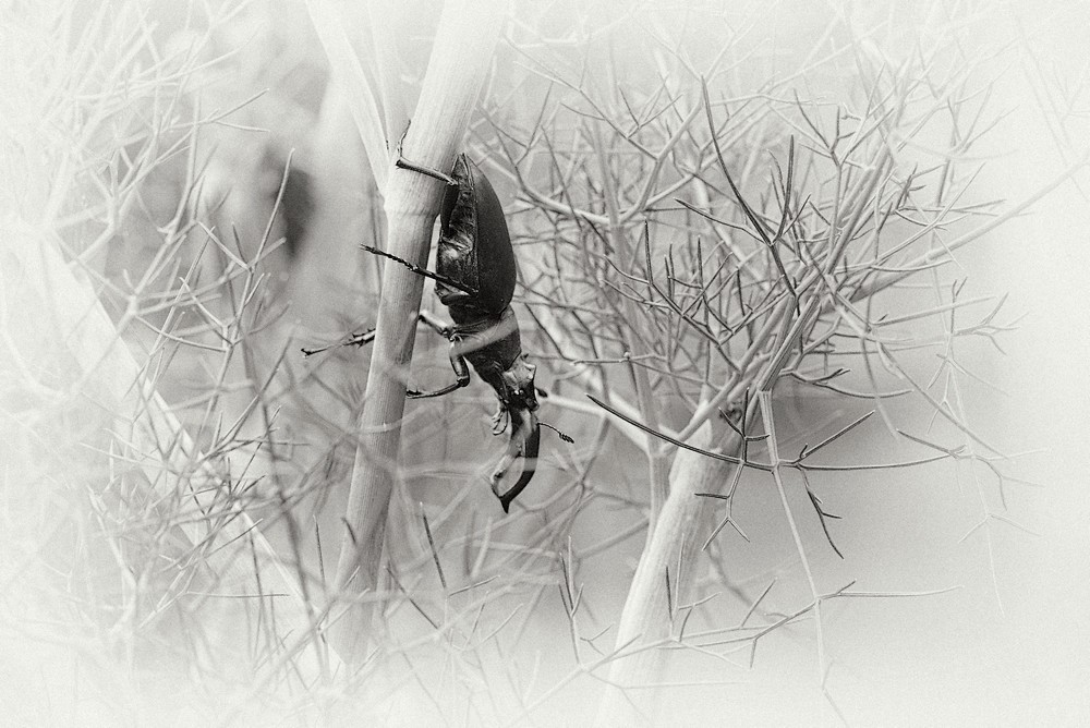 Le mâle utilise ses mandibules à la fois pour combattre ses rivaux et pour s'accoupler.