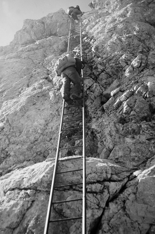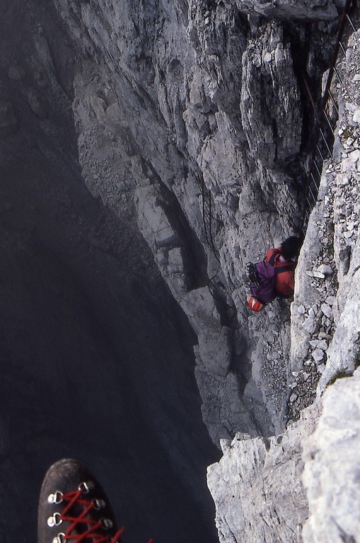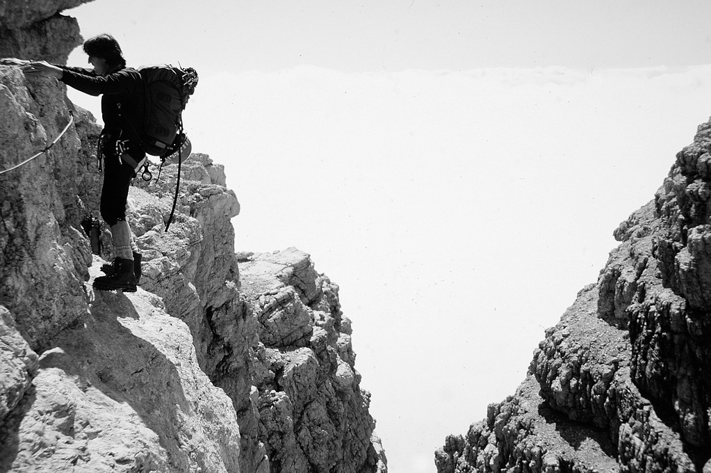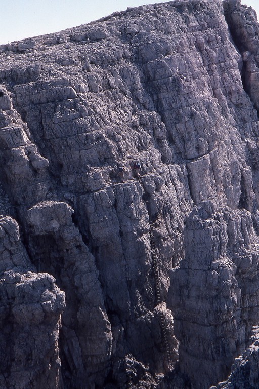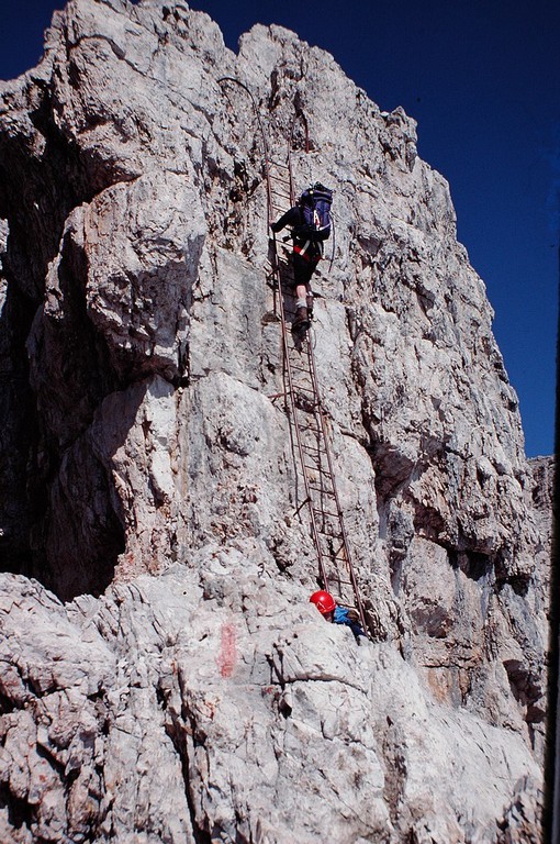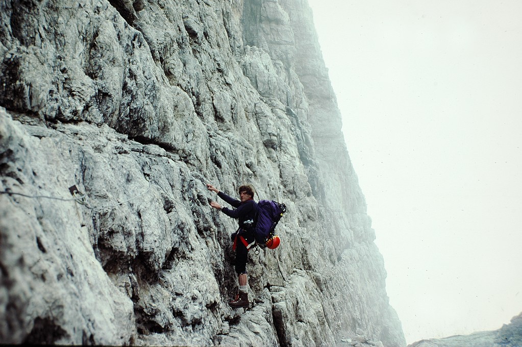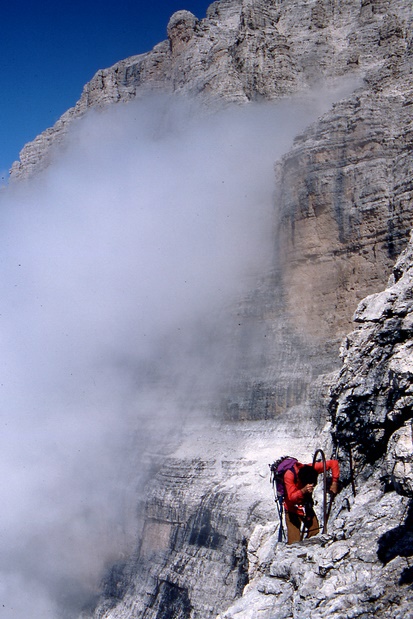 Après la guerre, les Italiens voyant le potentiel touristique que ces aménagements représentaient, il a été décidé d'équiper certaines parois de câbles pour faciliter le passage entre les vires existantes sur les vertigineuses parois des Dolomites, et de créer ainsi, les hautes routes (via ferrata).