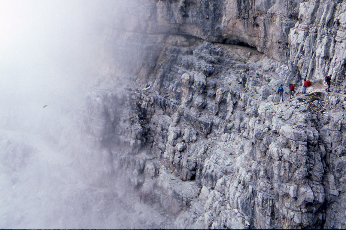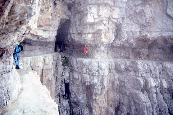 Pendant la guerre de 1916 à 1918, opposant les militaires italiens aux militaires autrichiens, dans les massifs des Dolomites, des tunnels et des passages sur des vires ont été réalisés. Ces vires permettaient aux armées de se déplacer d'un massif à l'autre, en facilitant le franchissement des barres rocheuses.