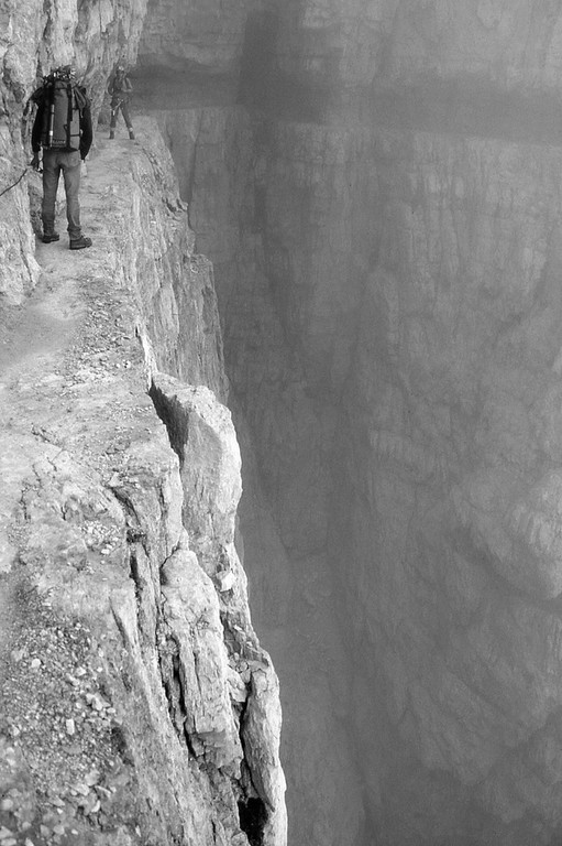 Le cheminement s’effectuera sur des vires souvent vertigineuses, parfois très étroites et très exposées.