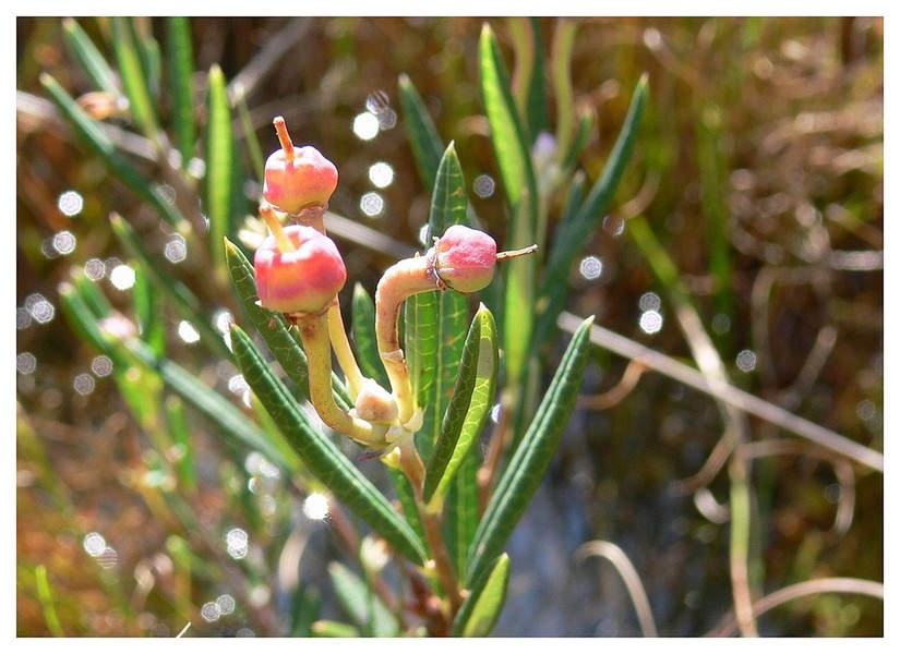 Une autre plante particulière, pousse en bordure des radeaux, l'Andromède, très petite plante à la floraison multiple.