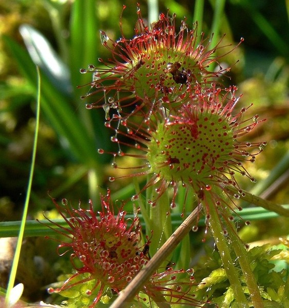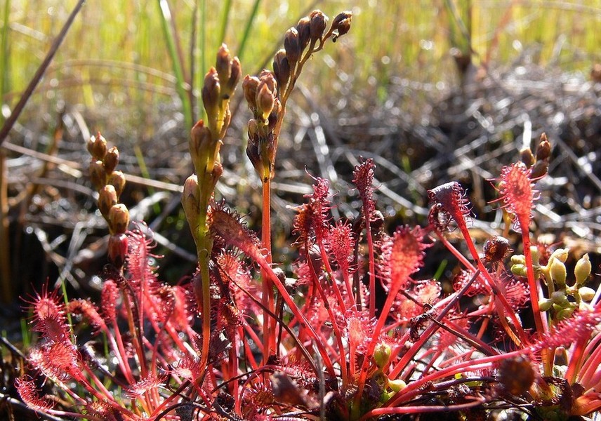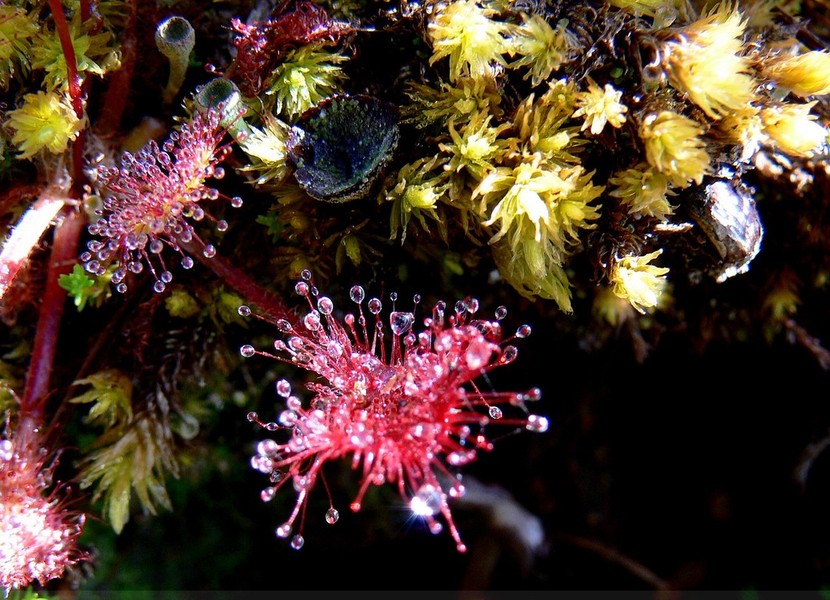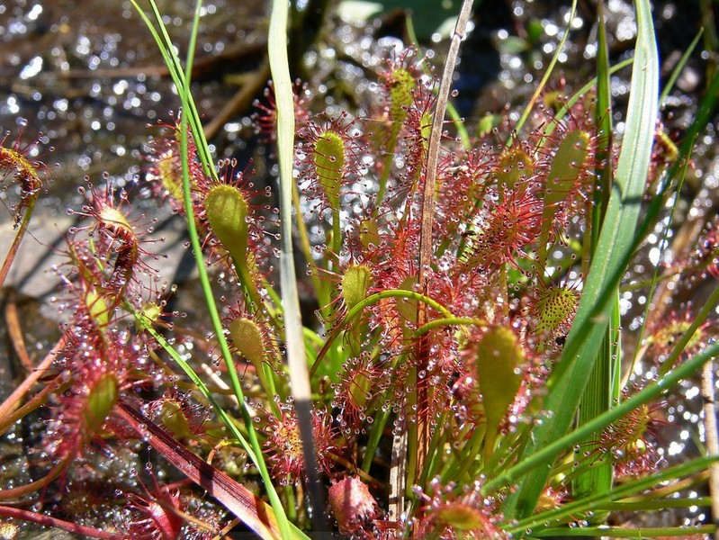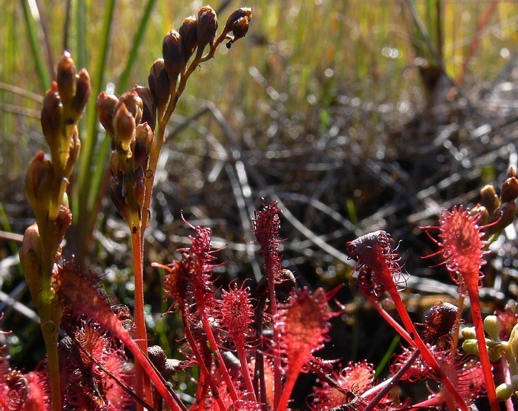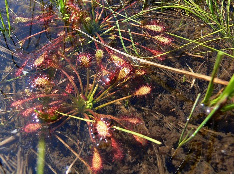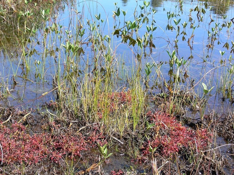 Deux Droséra y ont élu domicile, celle à feuilles rondes et celle à feuilles intermédiaires. Une autre plante carnivore y vit, mais elle, plus dans l'eau, la fameuse Utricularias (qui devrait faire l'objet d'un article dans un avenir proche).