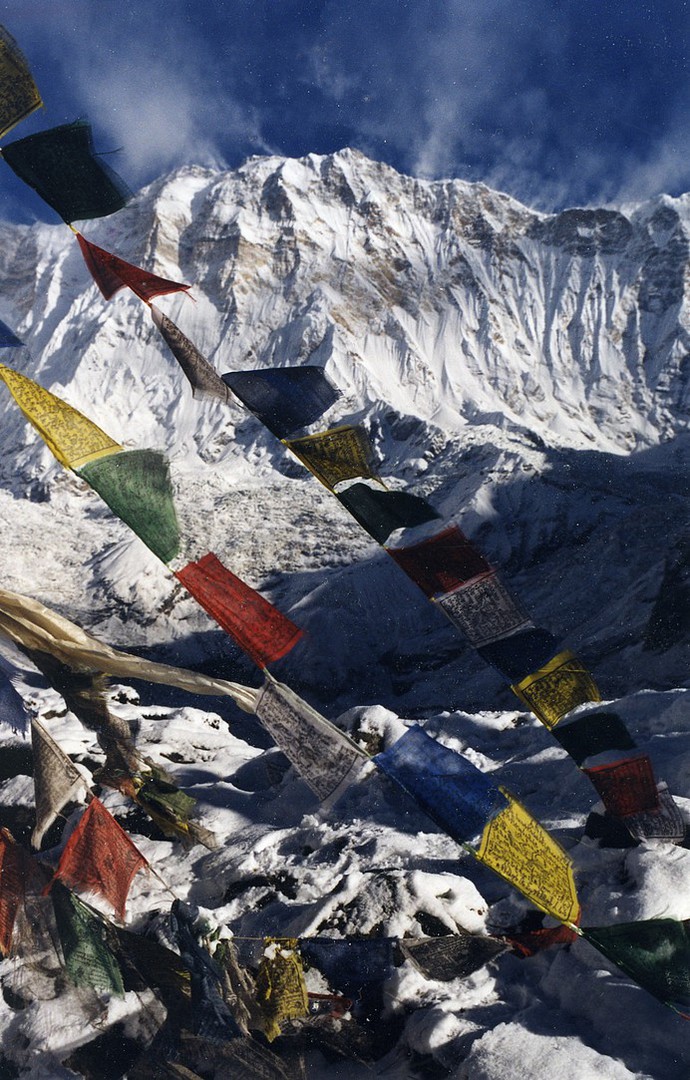 Ce matin, en quittant Chitre, nous bifurquons vers le sud-est, en direction de Ghandruk. Commence alors l’ascension vers le camp de base des Annapurna, accessible en suivant la vallée de la Modikhola River. Après une succession de montées et de descentes, épousant les mouvements d’un terrain parfois instable à cause d’éboulements, nous atteignons le camp de base du Machapuchare (3 700 m) le 23 octobre en fin de matinée.
